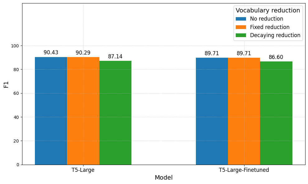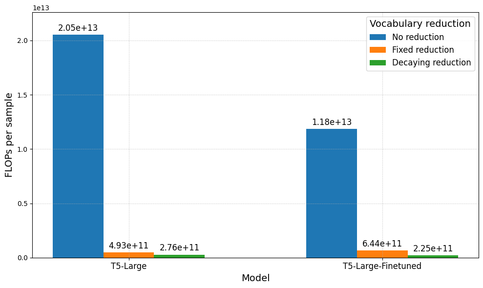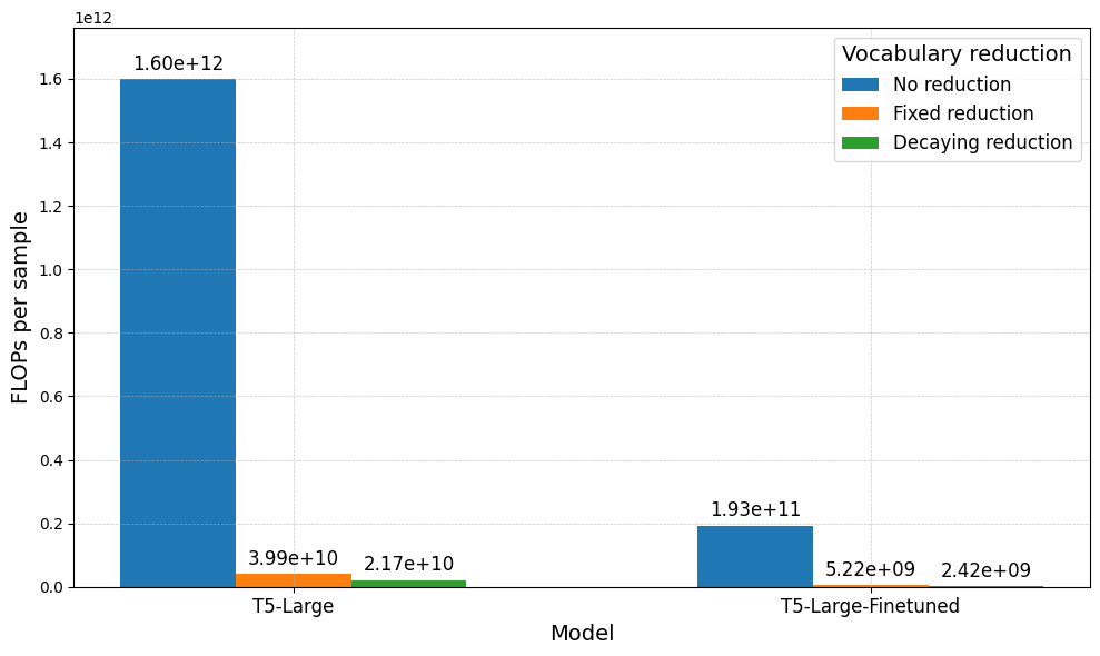 In conclusion, combining a vocabulary reduction approach, together with a confidence measure method, allows us to compute considerably fewer FLOPs, while retaining the performance with respect to Softmax and JSD baselines.